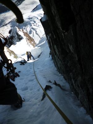 Material:4-5 Friends, 2-3 Eisschrauben für den Ausstiegsbereich, Zackenschlingen. Sind mit 2 Eisgeräten geklettert.Zeitbedarf bezieht sich auf die Strecke Biwakplatz - Selle.