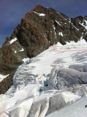 ausser dem Bergschrund bleibts voraussichtlich gut.