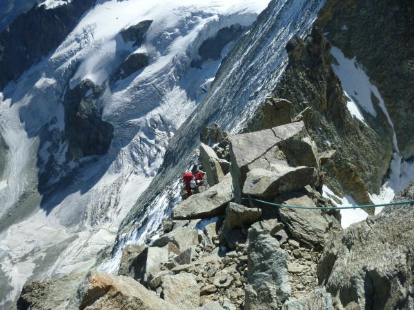 Abstieg im Fels auf dem Nordwest Grat, sich immer an der Gratkante halten.