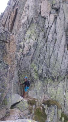 Wir benötigten keinerlei Friends; ab und zu haben wir Schlingen gelegt. Die Route ist aber gut saniert und hat regelmässig Borhaken. Alle Stände haben zwei Haken, teils verbunden. Grandioses Panorama rund um die Sidelenhütte. Unzählige spannende Granit-Routen - und auf fast jedem Gipfel sah oder hörte man jauchzende Seilschaften. Wir kommen wieder!