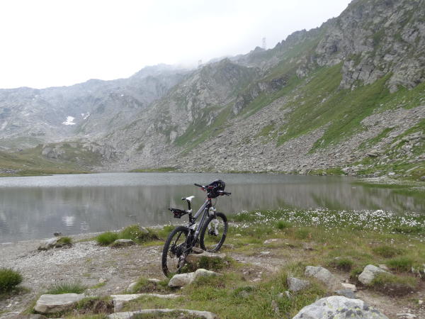 Mit dem Rucksackpacksystem von www.Genial-biken.ch bleibt bei den sehr starken Aufstiegen am Anfang nach Ossasco-Alp Cristallina das Rad sehr gut am Boden wenn
