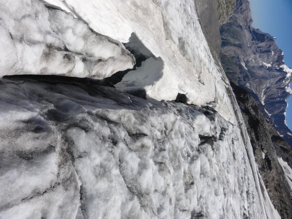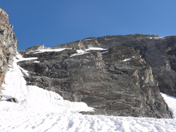 Abmarsch um viertel vor fünf. Die Randkluft haben wir am Couloir bei geeigneter Stelle überquert. Einstieg weiter östlich wurde auch gemacht. Sehr viel Lockergestein.