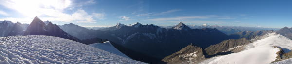 Gletscherwackel etwas mühsam wegen den vielen Rinnen, daher gleich lange gebraucht für Abstieg wie Aufstieg.