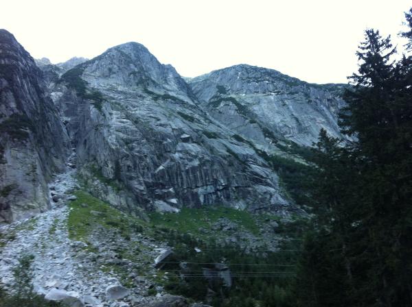 Nach der gestrigen Saggitarius zeigte uns Camälion schon bald, dass heute nicht mehr gedankenloses Raufklettern angesagt war! Vom Beginn weg fordert die Route den Vorsteiger pausenlos und die Bohrhaken verschwinden regelmässig nach unten aus der Sichtweite. Ohne solides Nervenkostüm geht nichts. Die ganze Palette an Granitkletterei wird gefordert. Manchmal hing ich am Standplatz und fragte mich "wie zum Geier soll ich jetzt zum ersten BH kommen?". Gegen Schluss trockneten wir beide tüchtig aus und auch ein Abstecher zu einem Wasserläufli hat wenig genützt.
