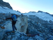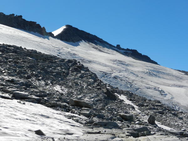Gemäss Info der Hüttenwartin, möglichst rechts am Gletscher entlang hochsteigen, da vorallem am Gletscher-Anfang (Nord-West Seite) grosse Steinschlag Gefahr. Solange die Temperaturen warm bleiben sollten die Verhältnisse weiterhin super bleiben.