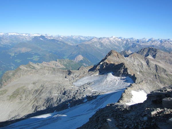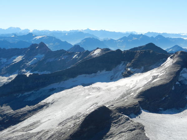 Perfekte Verhältnisse, Gletscher ist grösstenteils aper/blank, nur an wenigen Stellen dünne Schneeschicht (kurz vor Adulajoch und dann auf der Ostseite auf dem obersten Teil des Läntagletschers). Kaum Spalten auf gewählter Route und die wenigen sind gut sichtbar. Wunderbare Aussicht.