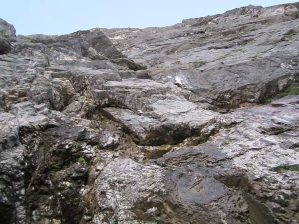Die ersten 5 Sl. waren, mit Ausnahme der 8-, eher Canyoning ähnlich nass(wird wohl immer so sein).Die 11.Sl war nur ca.3m (im Verschneidungswinkel)feucht und schleimig. Durch die gute Absicherung sind diese Stellen aber kein Problem.Der Rest war trocken. Das Gestein erinnert fasenweise schon sehr an die Lalitouren und erfordern immer volle Konzentration. Die Abseilstellen sind gut eingerichtet.