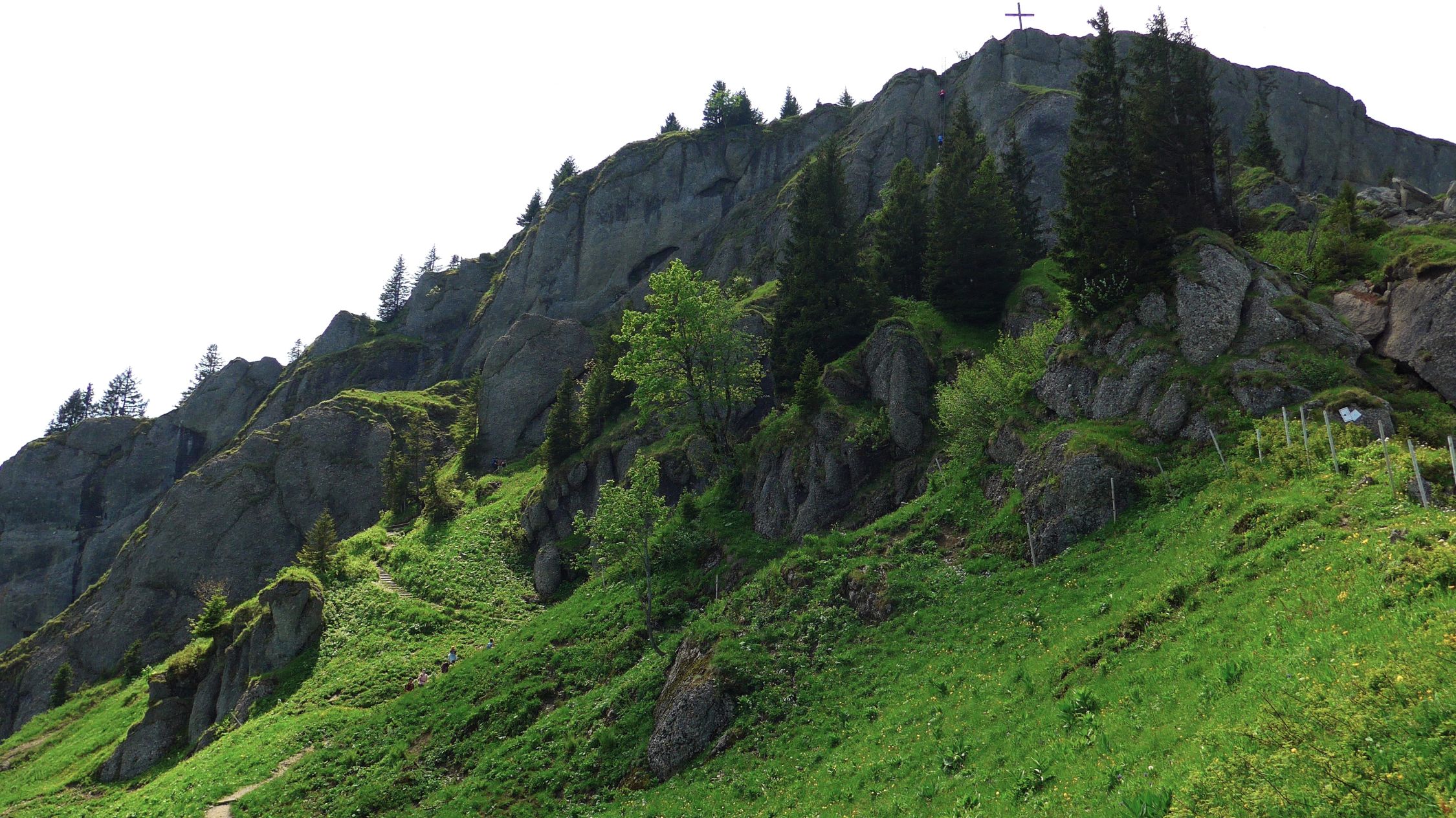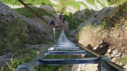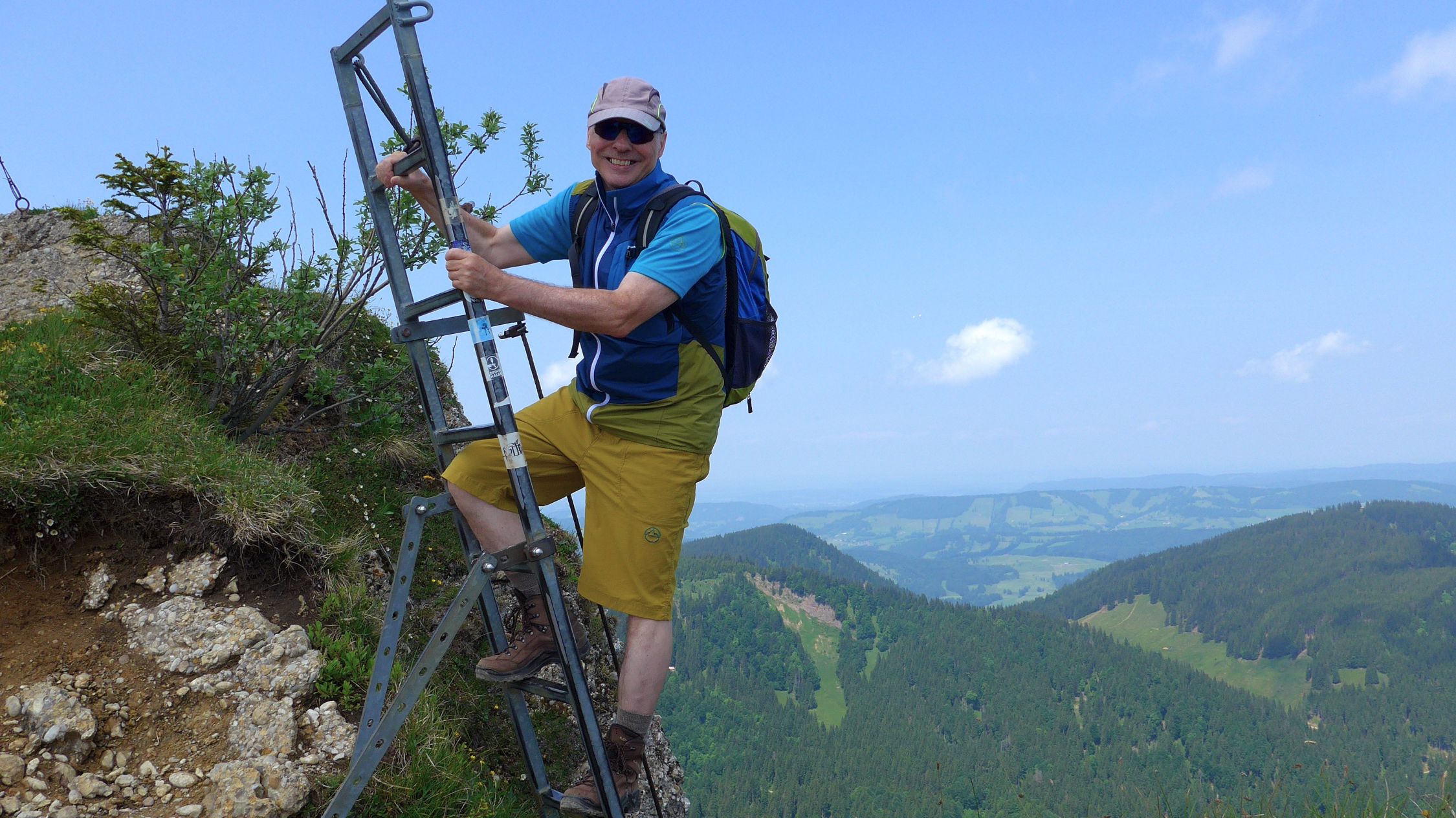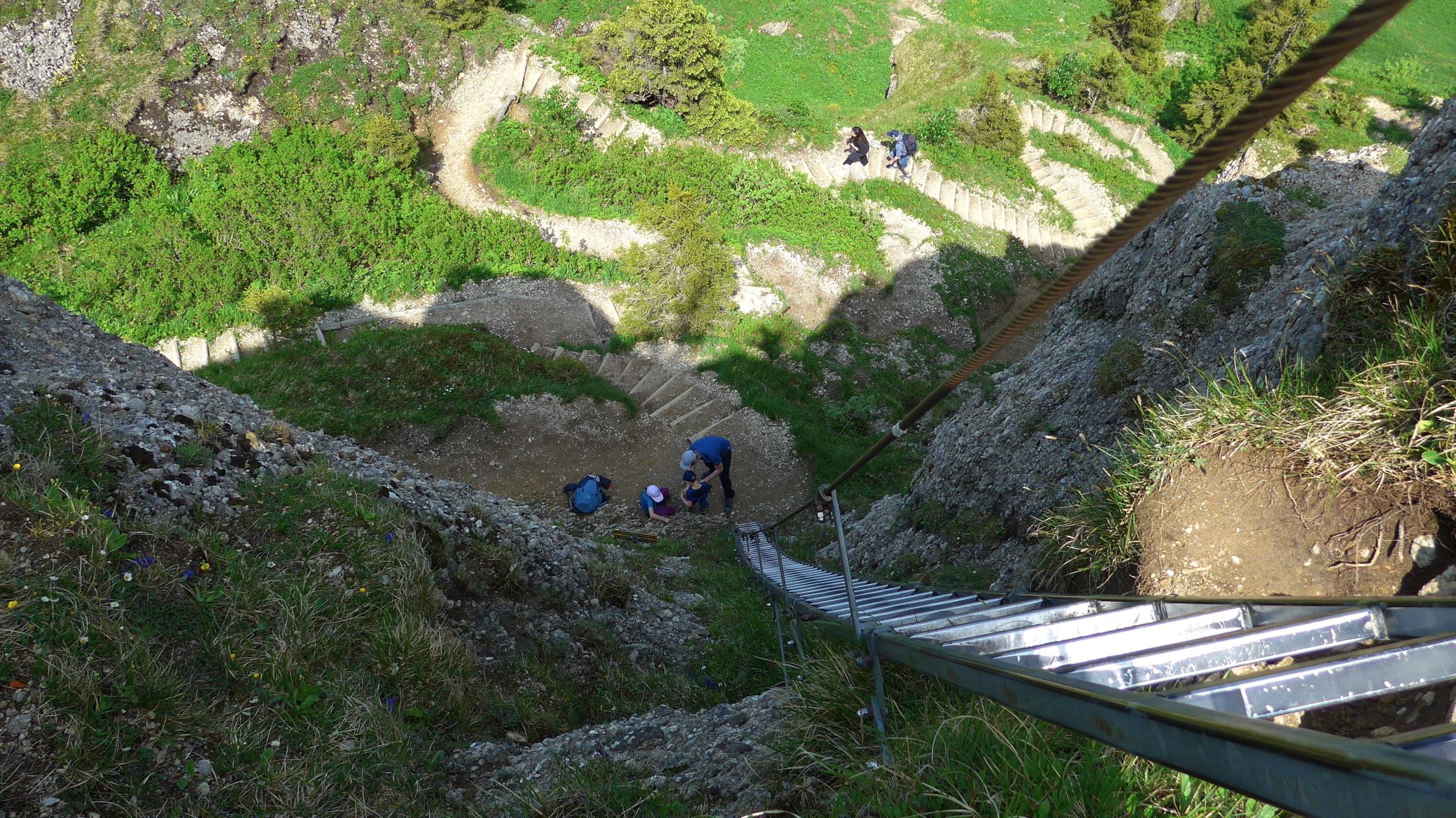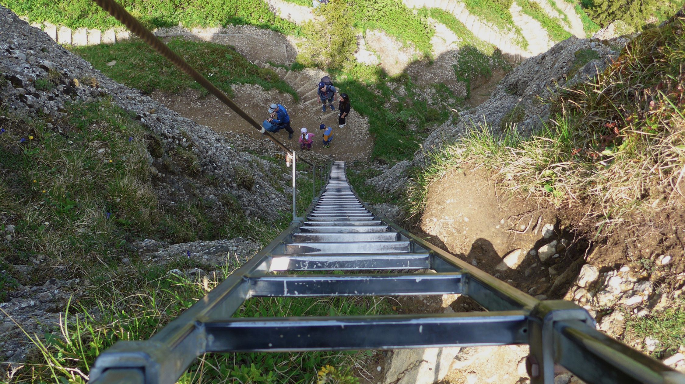 Der Steineberg grüsst bereits herüber und so freuen wir uns schon auf die schwindelerregende Himmelsleiter, die durch die senkrechten Felsabbrüche direkt zum Gipfelkreuz führt. Schwindelfrei und trittsicher sollte man jedenfalls sein, dann ist das Ganze halb so wild.