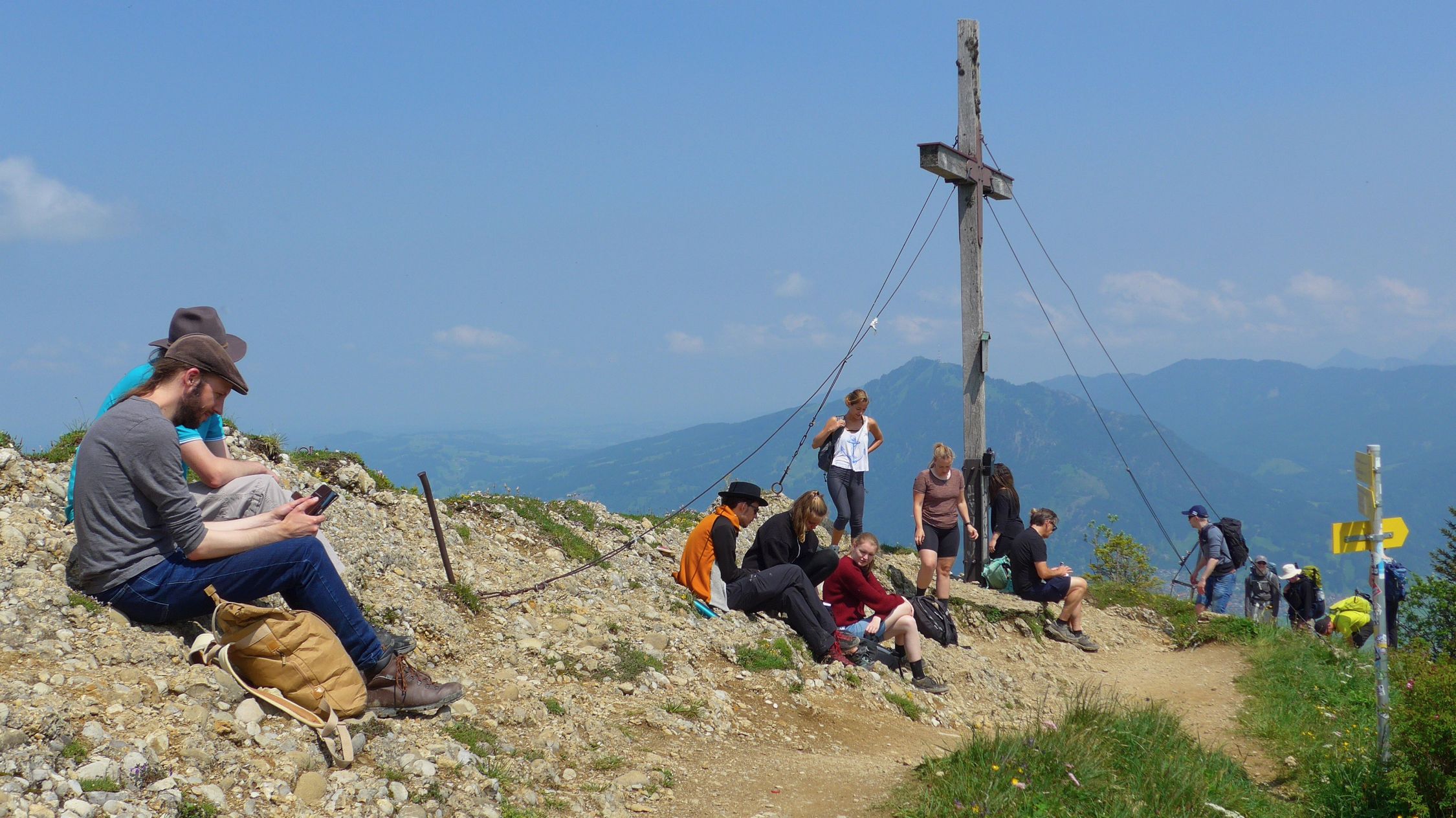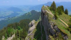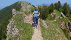 Die weitere Runde über den Bergkamm, das Steinköpfle und Wiesach, zurück zur Säge in Gunzesried ist einzigartig schön und ein grossartiges Bergerlebnis zwischen Nagelfluh und herrlich blühenden Almwiesen.