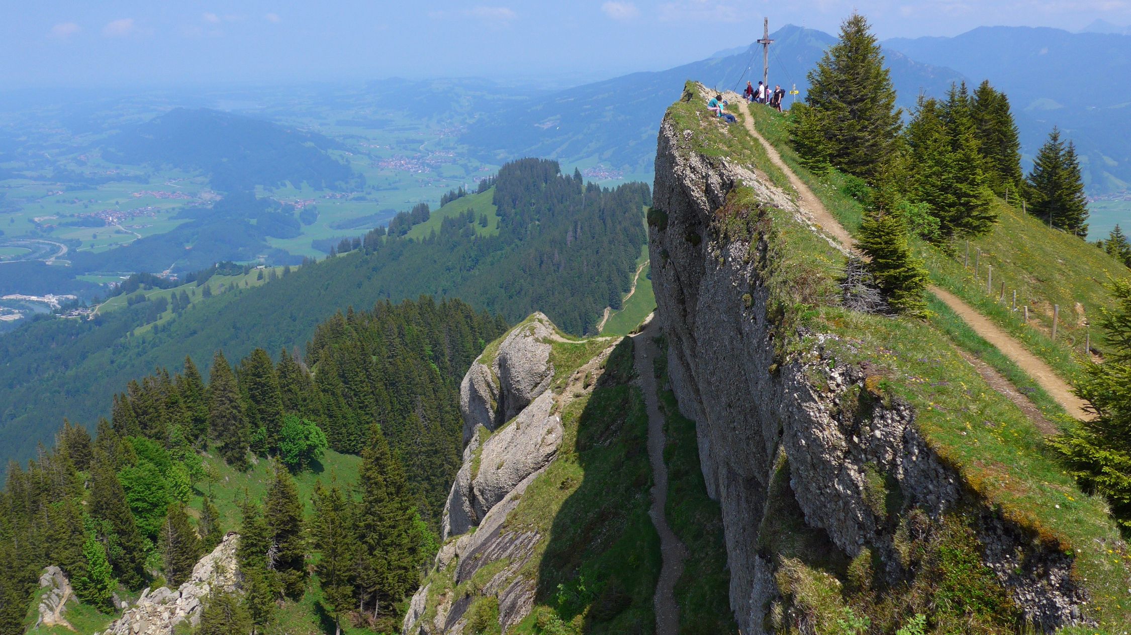 Die Gunzesrieder Säge. Ein Bergidyll in den Allgäuer Alpen. Der würzige Gunzesrieder Bergkäse ist weit über die Grenzen des Oberallgäus hinaus berühmt. Genauso wie die spektakuläre Himmelsleiter am Steineberg, die in den sozialen Netzwerken oft als waghalsiges Motiv herhalten muss.