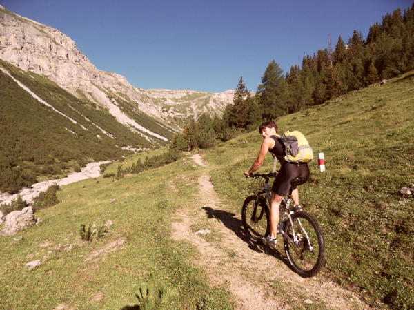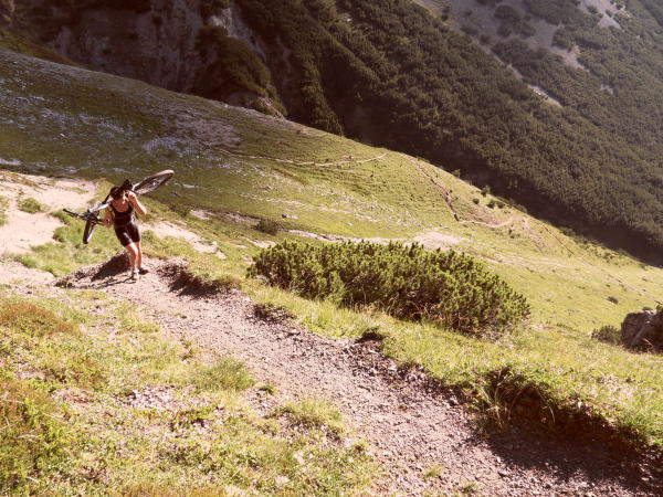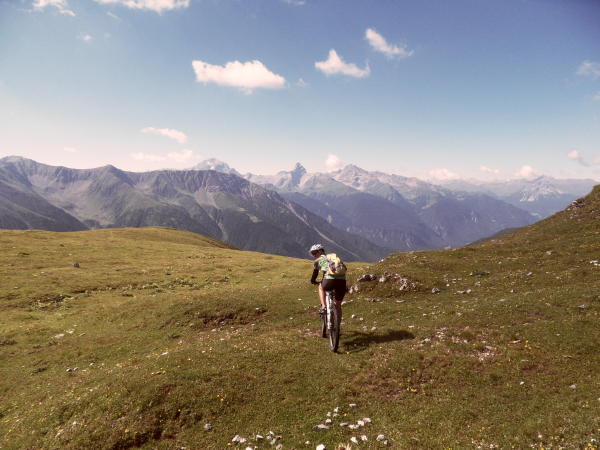 Durch`s Bärental bis 1960 Fahrbahr, dann schieben und tragen bis 2431 müM.