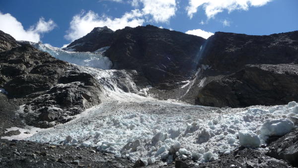 Am Abbruch des Fletschhorngletschers muss in der Nacht vorher ein riesiger Abbruch gewesen sein. Siehe Foto!