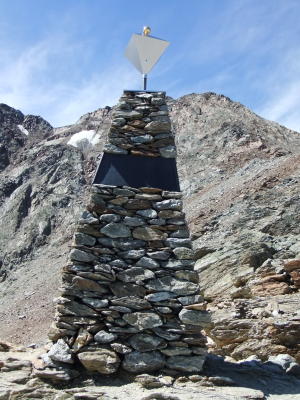 Wer noch Zeit und Lust auf weitere 100 Höhenmeter hat, besucht das Steinmonument, welches an 5100 Jahre alten "Mann von Similaun" (Ötzi) erinnert. Hierzu benutzt man ausgeschilderten und rot-weiß markierten Bergweg mit Nr. 2A zum Finailspitz hinauf. Nach knapper Dreiviertel-Stunde erreicht man das Tisenjoch, auf welcher die Steinpyramide steht. 70 m davon entfernt in nordöstlicher Richtung befinden sich nur noch zwei kleine Schmelzseen, wo noch vor 20 Jahren der Gletscher-Rand war und Ötzi vom Eis freigeben wurde...