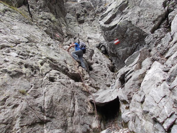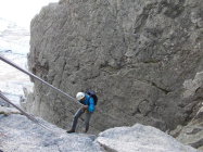Im Kletterführer Känel Plaisir Süd wird ausdrücklich vor dem Verhauer im Abstieg durch die Schlucht gewarnt. Wer, wie wir, leichtfertigerweise diesen Hinweis übersieht, muss an Ständen mit alten, geschlagenen Bohrhaken abseilen.