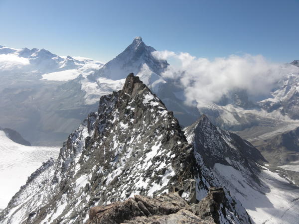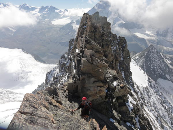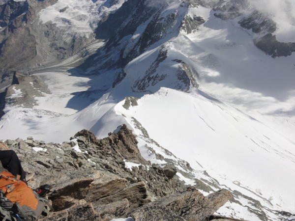 Bei den derzeitigen Temperaturen absolut zu empfehlen. Besser von N nach S klettern. Ist zwar schwieriger (da man kaum abseilen kann), aber dafürt hat man immer das Matterhorn schräg links vor einem, die Dent d'Hérens schräg rechts vor einem und überhaupt kommt so das Bergpanorama viel besser zur Geltung.