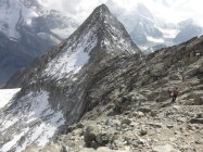 Schönbielhütte bis Gletscher: Trocken, kein Schnee auf Pfad. Steinmännchen zeigen den Verlauf der Route klar an.