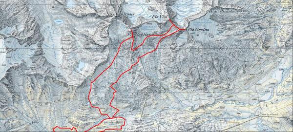 Piz Gaglianera (3121m): Scalettahütte 2205m - Piz Gaglianera 3121m - Piz Vial 3168m - Piz Graina 3067m.