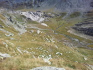Super Spätsommertag. Blauweiss markierter Bergweg Richtung Fuorcla Sura da Lavax. Danach keine Wegspuren und Markierungen mehr. Aufstieg und Abstieg über viel Geröll. Schwierigkeiten T4 - T5.