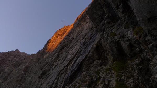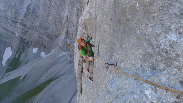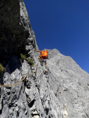 ganz rauf. Ca 15 Stunden gebraucht und im oberen Wandteil einen geräumigen Biwakplatz