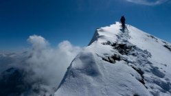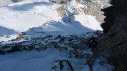 gute Verhältnisse am Westgrat: etwas Schnee, der aber nicht weiter stört. Oberer Teil der Westflanke guter Firn, die letzten Meter zum Grat kombiniert mit ebenfalls gutem, tragenden Firn. Gipfelgrat problemlos.