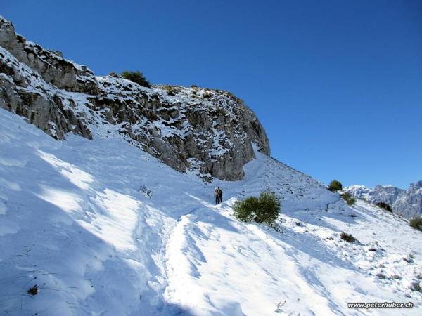 Als Ausklang sind wir noch zum Seewli (See) hochgestiegen. Der Weg ist stellenweise mit ca. 20 cm Schnee bedeckt. Spuren sind vorhanden. Vorsicht in den steilen Traversen. Am Nachmittag ist eine kleines Schneebrett auf den Weg abgegangen und hat uns nur knapp verfehlt.