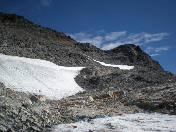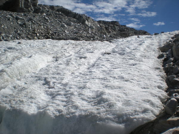Kein Schnee, Gletscher ohne Spalten und gut begehbar. Lange Tour