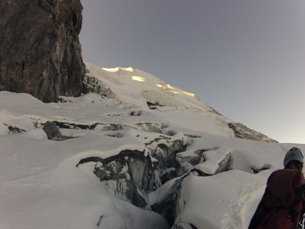 Hüttenzustieg schneefrei; Problemlos auch im Dunkeln zu finden, bei gut markiertem Weg. Payerhütte ausgebucht und Reservierung erforderlich. Ab Payerhütte Felsen mit Schnee und wenig Eis durchsetzt. Dadurch Sicherungen sinnvoll. Querungen allerdings nicht heikel. Weg in der Dunkelheit nicht einfach zu finden, daher Aufbruch bei Sonnenaufgang ausreichend. Gute Spur mit Trittschnee nach dem Grat bis zum Gipfel. Spalten geschlossen. Optimales Wetter! Perfekter Sonnenschein und nahezu windstill.
