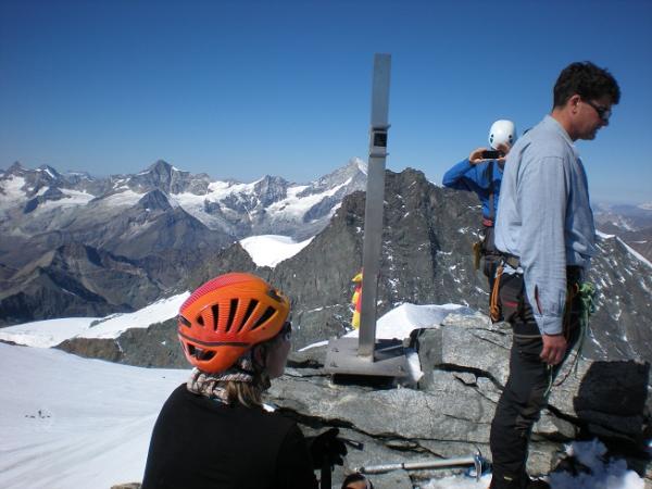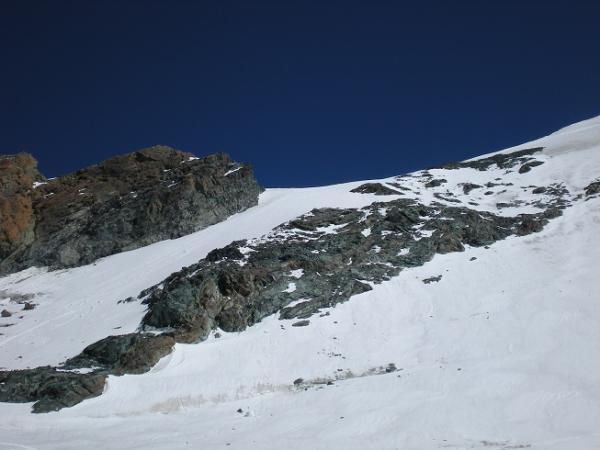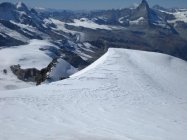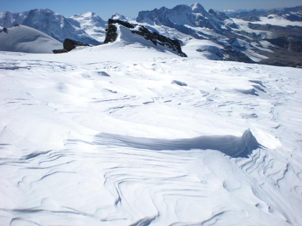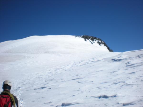 Super Verhältnisse. Grat vom Adlerhorn hinunter hat super Trittschnee. Hinauf zum Strahlhorn hat es auch super Trittfirn.