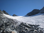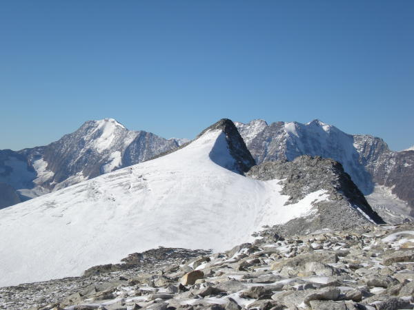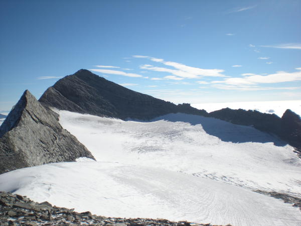 Langer Aufstieg durch Geröll, extremer Rückgang des Gletscher, Gipfel zerfällt