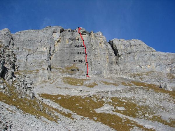 Härz Bluät hat zwei grosse Ansprüche, nämlich die 1.SL (wenn auch kurz) so schwer und dann die 5. und 6. SL mit happigen Abständen. Ein Sturz in den Runouts wäre wirklich gefährlich!