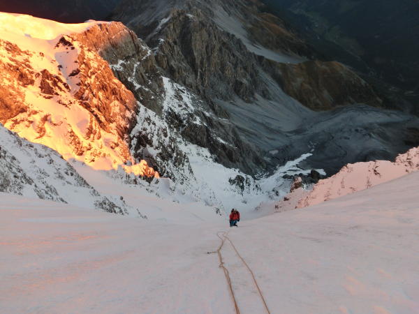 Die Wand war in Topzustand: bis zum Flaschenhals durchgehend harter Schnee, darüber teilweise blank.