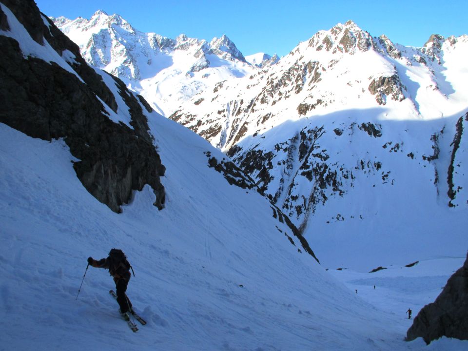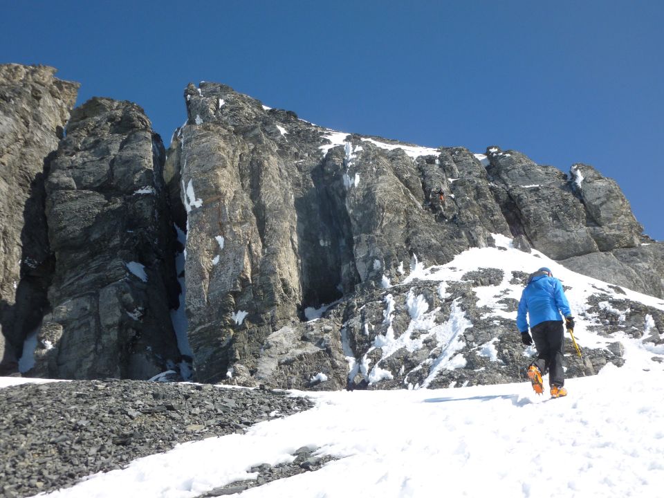 Zur Zeit ideale Tourenbedingungen. Steigeisen und ein Pickel gehören zur Ausrüstung für diese Tour.