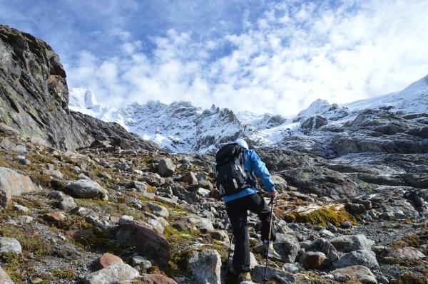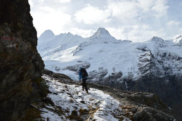 Ab 2400m etwas Neuschnee. Über die Bäche viel Wassereis.
