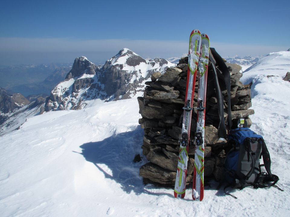 Von St.Jakob bis Bordrüti Skis getragen. Die Spuren zum Chimi und Langboden waren gefroren. Durch den Gatterwald zur Gossalp, weiter durch die mit Lawinenkegel übersäte Schluecht auf Oberalp. Die Alphütten auf der Oberalp sind noch stark eingeschneit. Vom Oberalper Grat ist eine mächtige Lawine bis zur Aufstiegsspur abgegangen. Lange Querung unter der Bannalper Schonegg, dem Oberberg und Hasenstock durch zum Rot Grätli. Von dort leicht abgefahren, dann steil zur Engelberger Lücke hoch. Dem Grat entlang auf den Wissigstock. Wunderbare Fernsicht in alle Himmelsrichtungen. Zur E-Lücke hinab, über den Schlossfirn zur Schlossstocklücke. Auf schönem Sulz über den Blüemlisalpfirn unter die grosse Moräne abgefahren. Kurzer Anstieg auf die Moräne, via Firnbäch, Bösenboden, Steinhüttli ins Grosstal zurück.