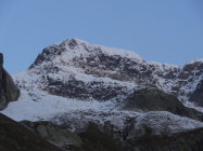 Ab dem Grassenjoch folgen 3 Seillängen Wandkletterei (teils etwas plattig). Diese sind momentan mit ziemlich stark verschneit und vereist. Steigeisen sind auf der ganzen Kletterei obligatorisch. Der angegebene Schwierigkeitsgrad ZS- (welcher bei trockenem Fels sicher hinkommt) ist daher im Moment deutlich zu tief.