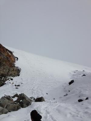 In der Querung hat es noch kein Schnee, d.h. Skier müssen bis zu Beginn des Gletschers getragen werden. Die kleineren Spalten sind zugeschneit, die grossen noch erkennbar, Brücken eher heikel.
