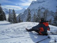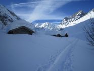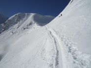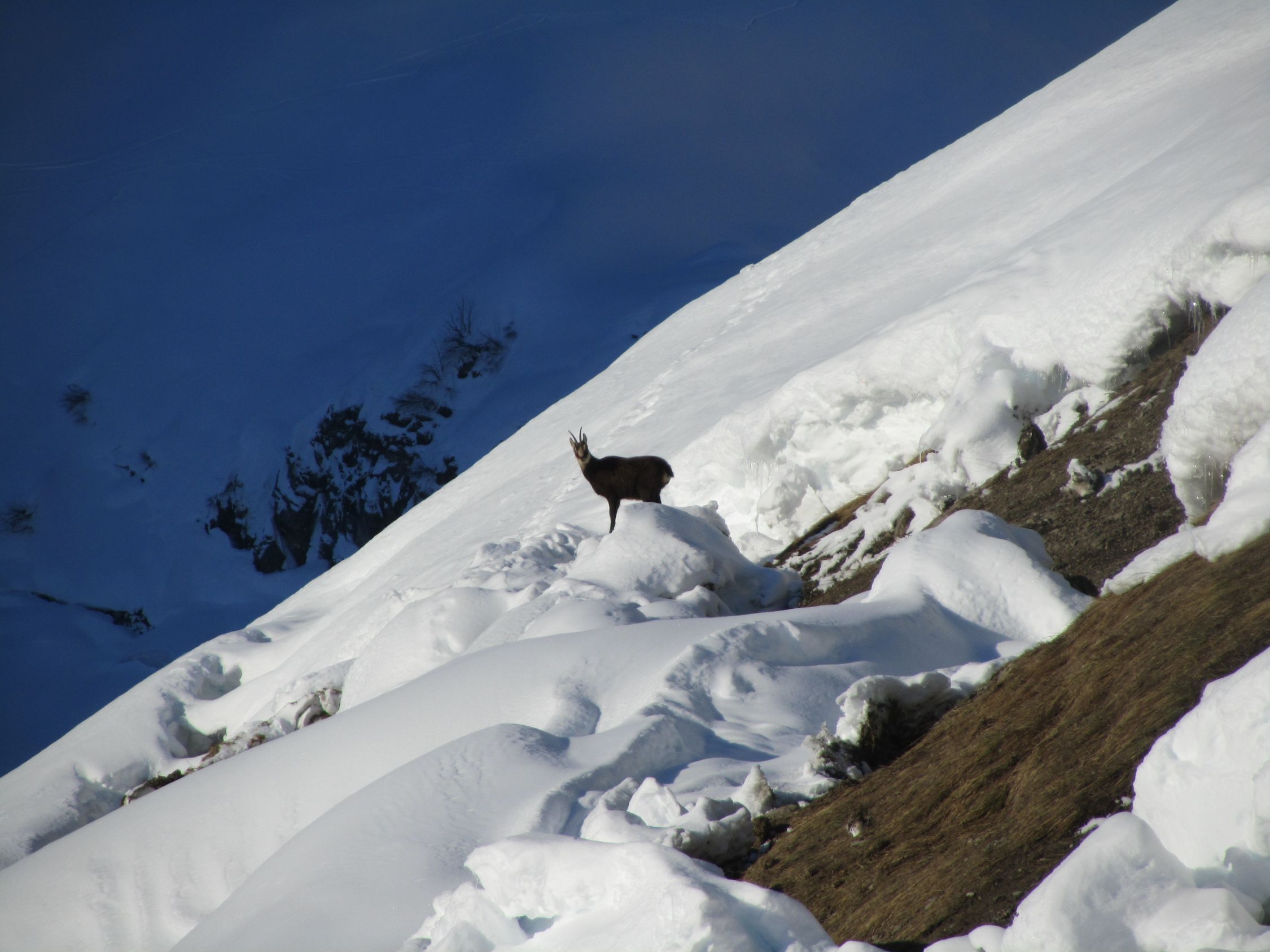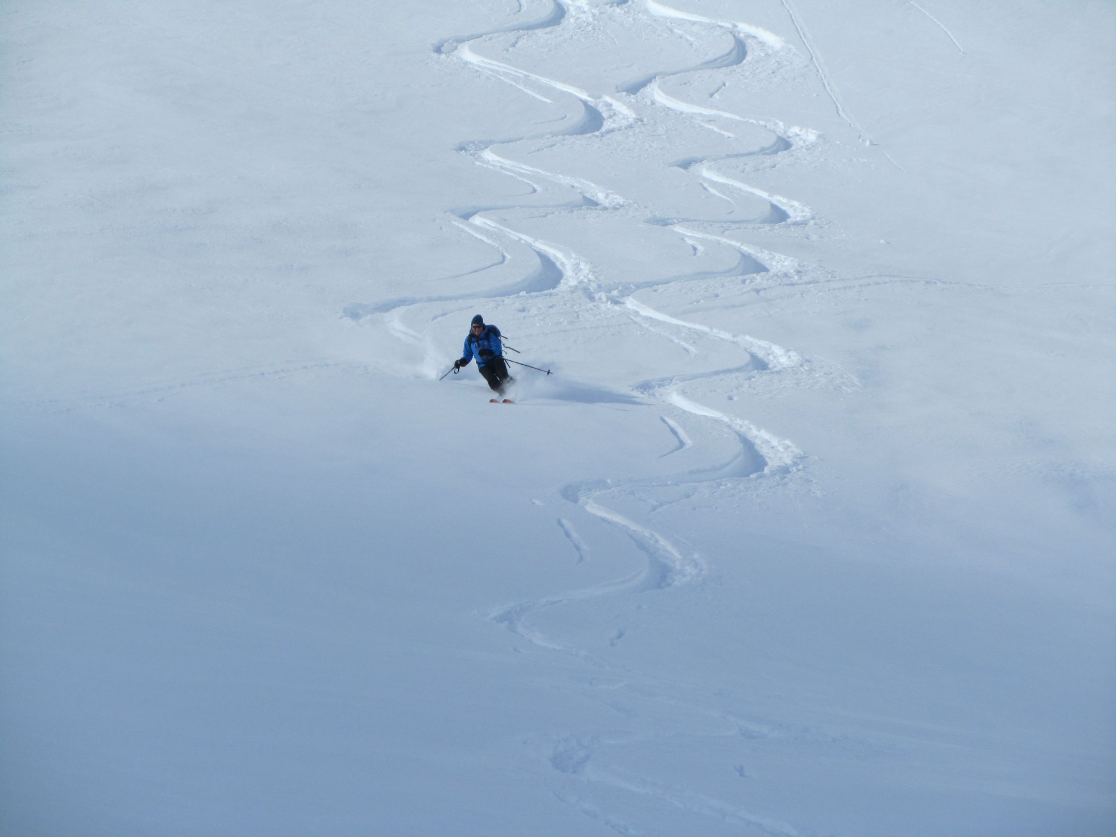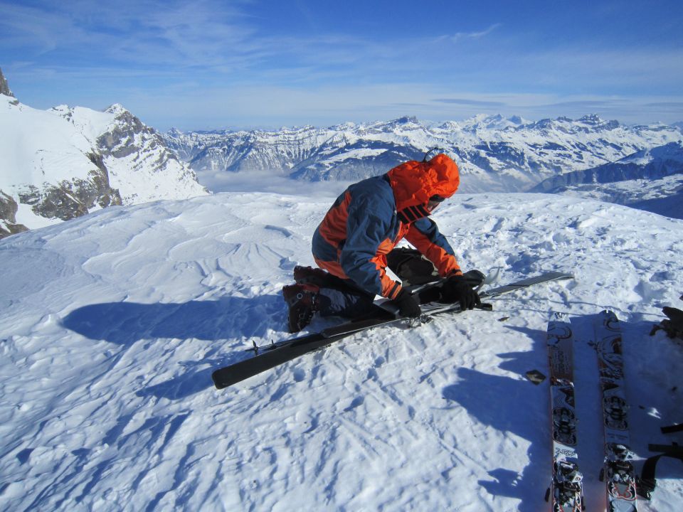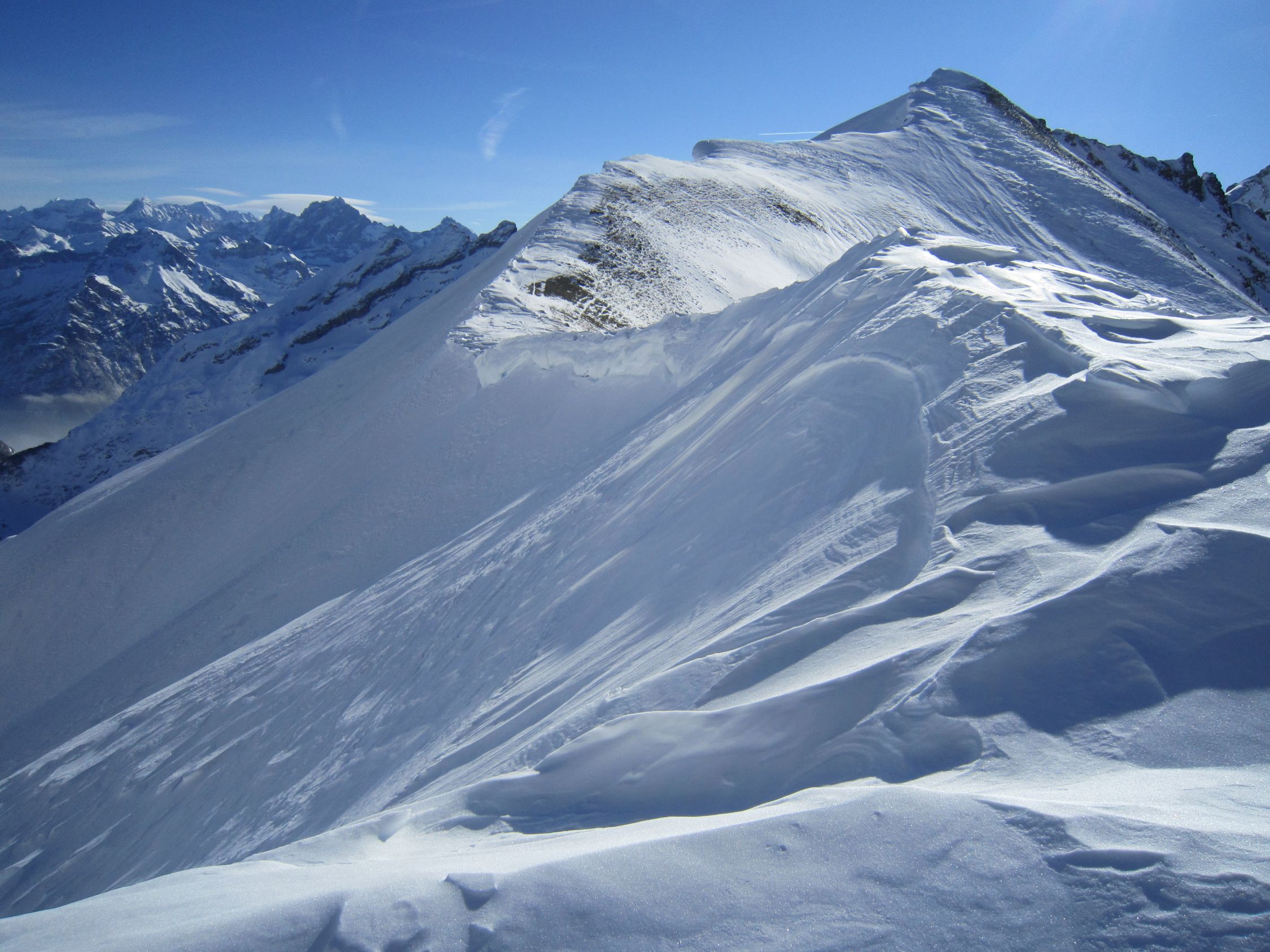 Der Urner Talboden lag im Nebel aber schon auf Brüsti waren wir über den Wolken. Wir stiegen zum Rämseli auf und fuhren in den Kessel von Chulm ab. Die Hänge auf den Geissrüggen sind steil und wir kamen trotz der Kälte ins Schwitzen. Vom Geissrüggen Richtung Waldnacht zeigten sich gewaltige Fischmäuler in denen eine Gämse nach Futter suchte. Die Traverse zum Angistock war wie meistens vereist. Wir spurten unter dem Brunni und Blackenstock die lange Querung zum Surenenpass. Grosse Wächten grüssten dem Gipfelgrat entlang zum Eggenmandli. Am Gipfel ziemlich windig und kalt, kein Ort zum verweilen. Wir fuhren über den steilen Nordosthang Richtung Waldnacht ab. Herrlicher Pulverschnee und viel Platz für eigene Spuren, ja was will man noch mehr? Kurzer Aufstieg mit wenig Höhenmeter von Waldnacht zur Brüstiabfahrt. Die Abfahrt von Brüsti nach Attinghausen ist zwar schon ziemlich verfahren aber immer noch gut machbar.