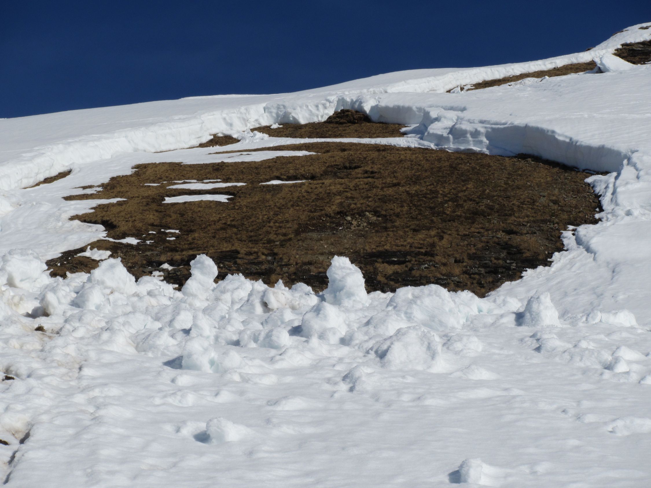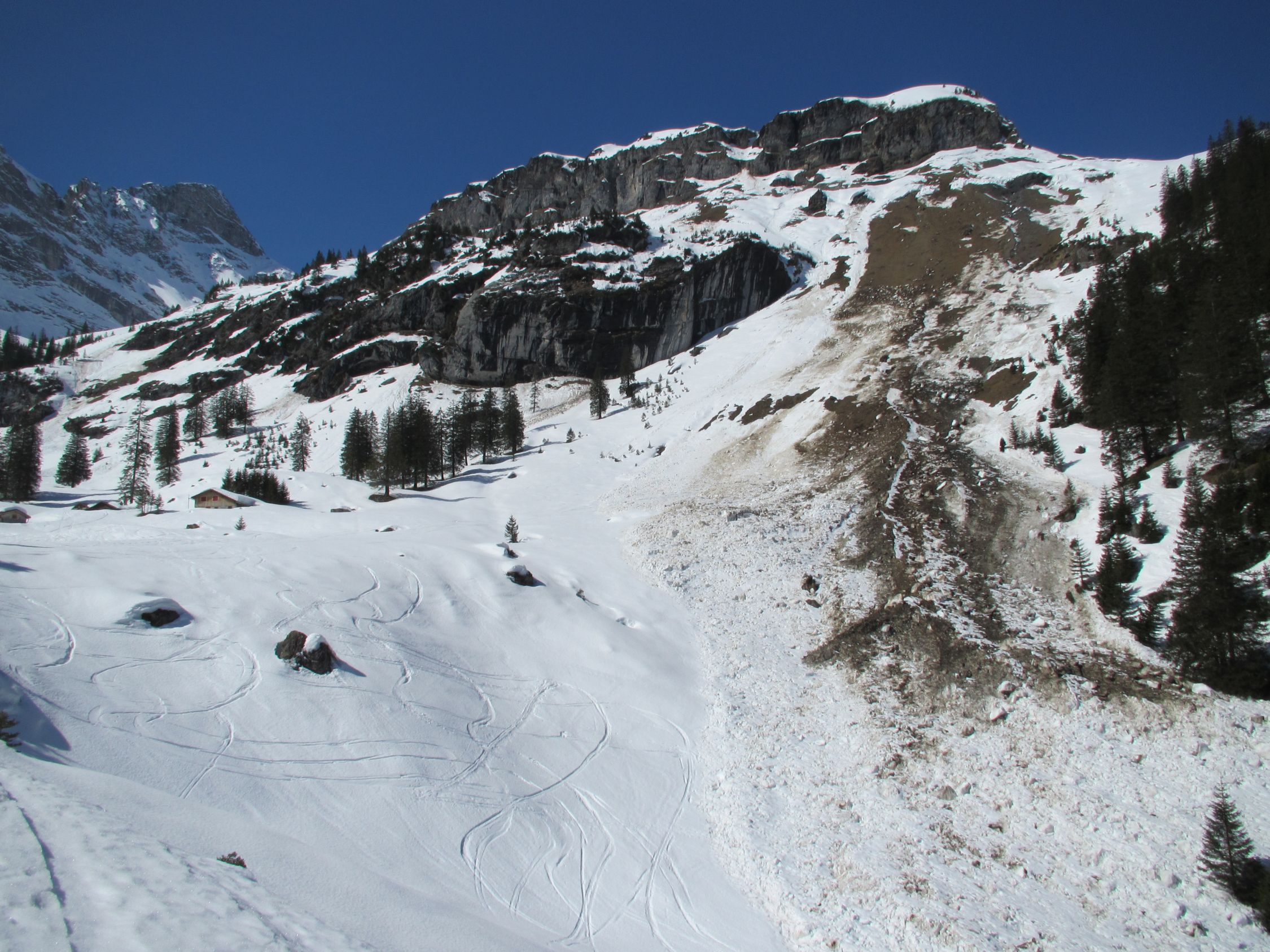 Viele Lawinenabgänge zu Folge des milden Frühlingswetter. Auch neben dem Chüewäspen ist vor ein paar Tagen eine Grundlawine abgegangen