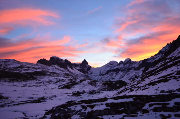 Ich wählte nicht die Route übers Edelwissband, bei Schnee nicht zu empfehlen. Sondern durch die Geröllhalde wo man östlich vom Gross Chilchberg hoch kommt.