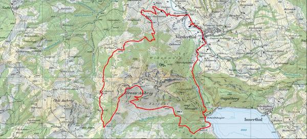 Von Vorderthal 735m über Ahoreli zum Gipfel und über Bärlaui, Schrähhoger zurück nach Vorderthal.