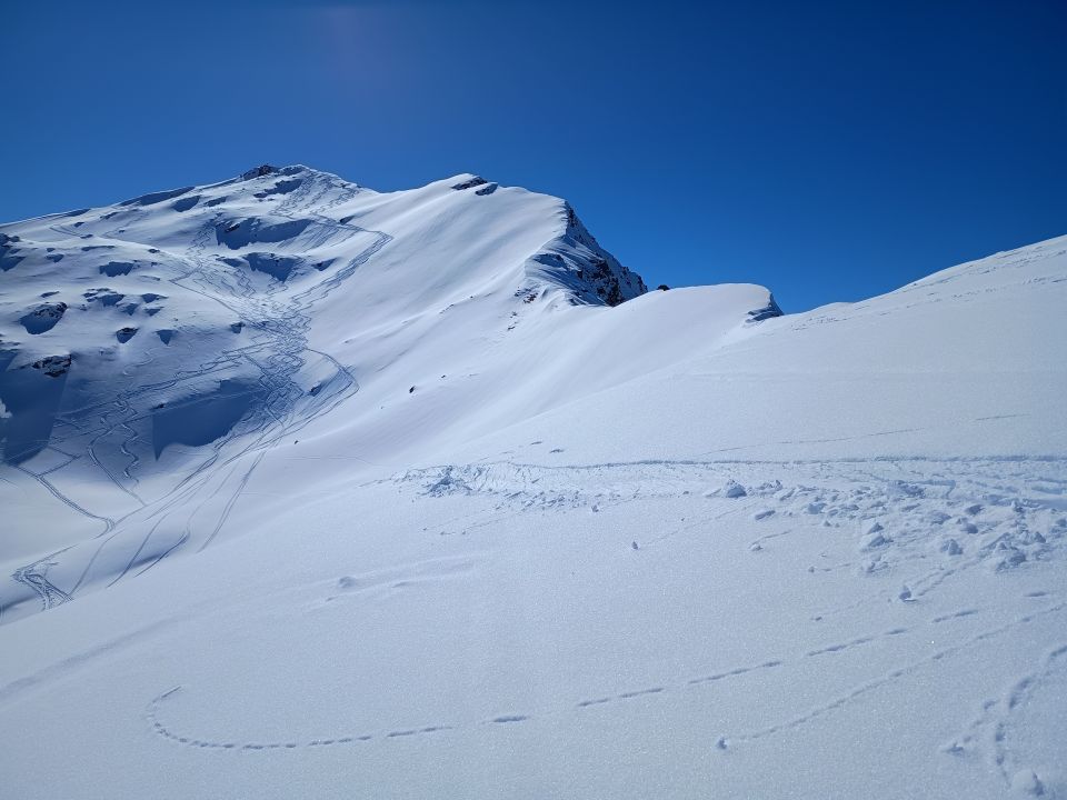 oben schöner Pulver nordseitig leider komplett hart und zerfahren