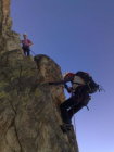 Die 5er-Seillängen im oberen Teil des 3. Turms können gut zusammengehängt werden. Der Stand dazwischen ist recht unbequem, besonders für eine 3er-Seilschaft.