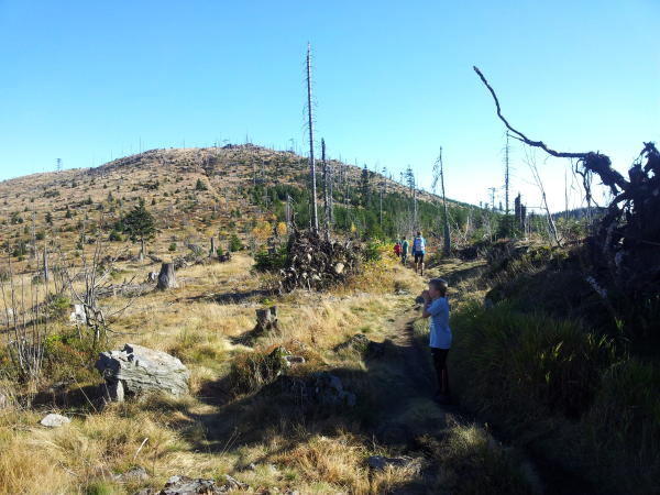 von Schareben bis kleiner Arber Von Berghütte Schareben über Heugstatt und Enzian bis zum kleinen Arber auf dem Kamm entlang, ca. 9 km.Es sind von hier noch 2 km bis zum Arbergipfel.