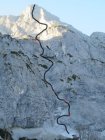 5 min ab Gramai-Alm. Einstieg ist in der Randkluft zwischen Schneefeld und Wand.