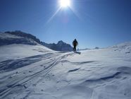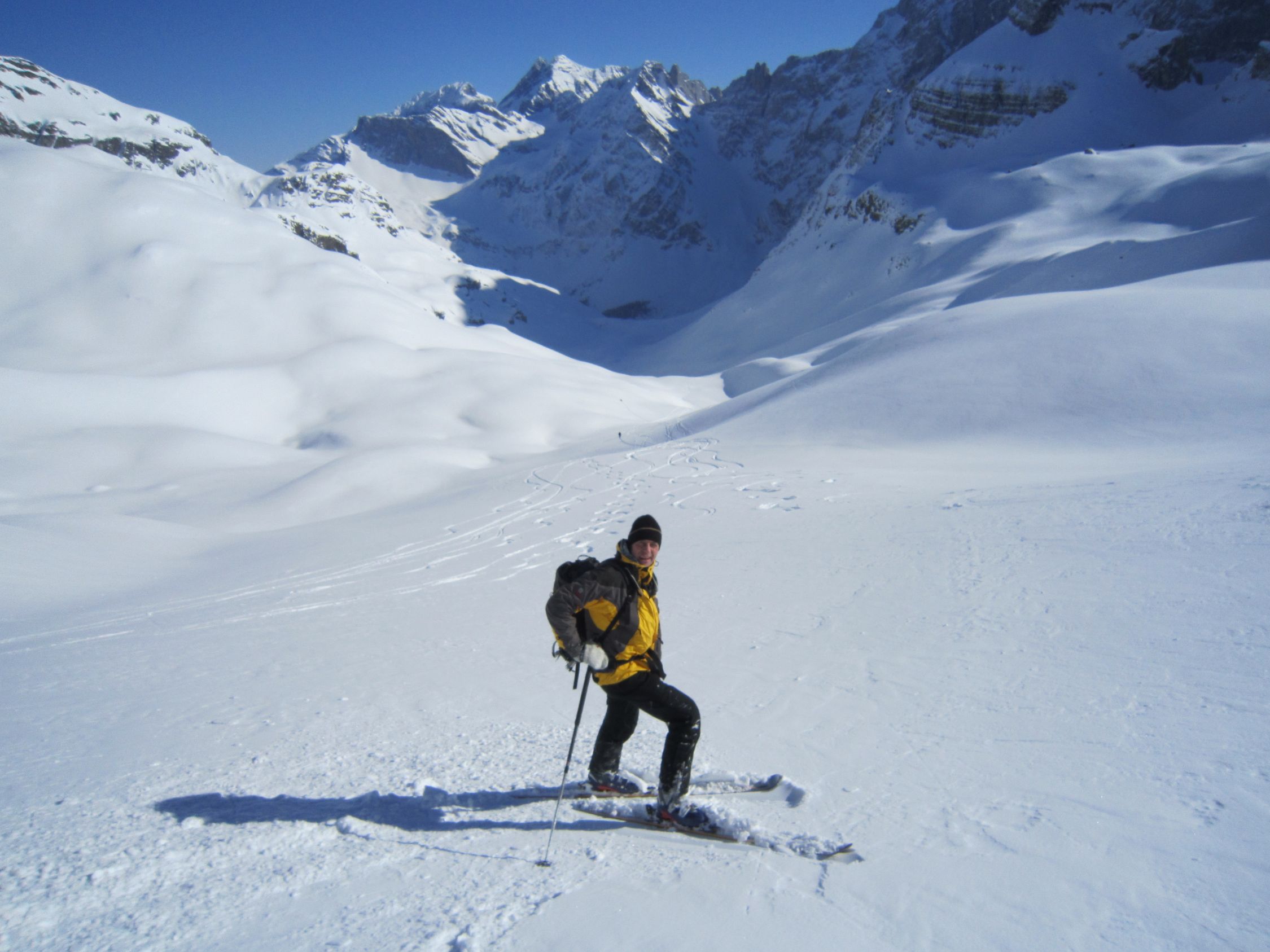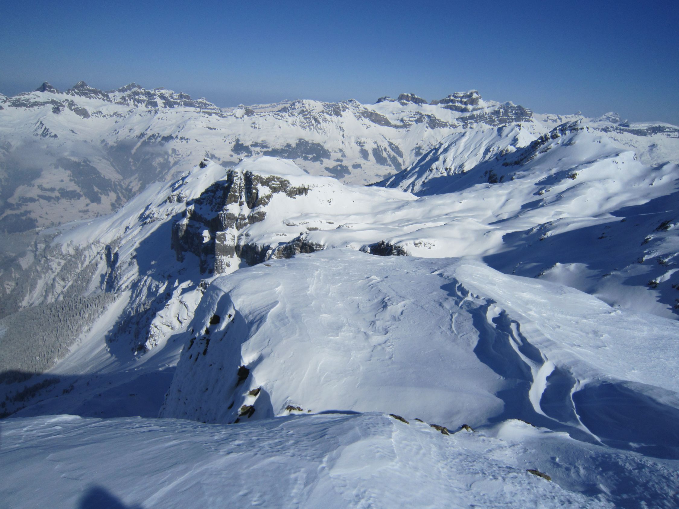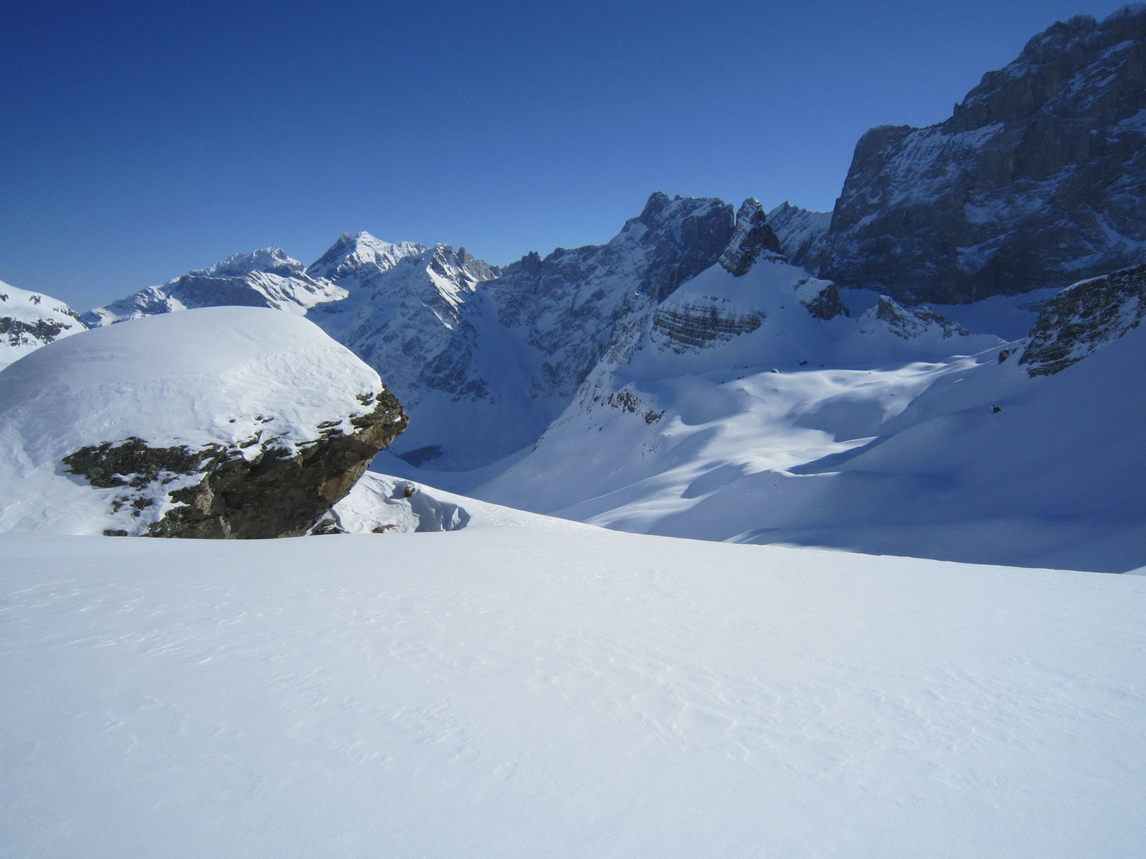 In Unterschächen zeigte das Thermometer -15°C an, dazu wehte die Bise. Durch das tief verschneite Brunnital auf die Brunnialp, durch den Chärschelenwald zum Flösch hinauf. Im Griesstal wurden unsere Nasen rötlich verfärbt. Wie üblich zuerst den Aussichtspunkt beim Kreuz besucht. Auf dem Hoch Fulen Gipfel stürmischer Wind. Südlich unterhalb des Steinmandlis, fanden wir einen geschützten Platz. In der Abfahrt gab es noch viele unverfahrene Stellen, auch im flachere Untere Griesstal gings flott dahin. Über Pfaffen und Brunni auf der Alpstrasse nach Unterschächen zurück.