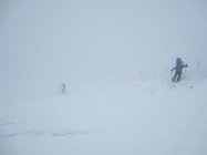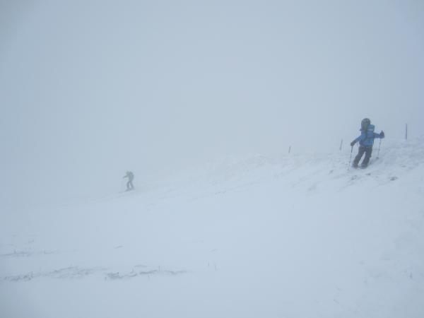 Der Neuschnee ist sehr stark verblasen daher beträgt die Schneehöhe zwischen 1 und 50cm Schnee auf 0cm Unterlage.