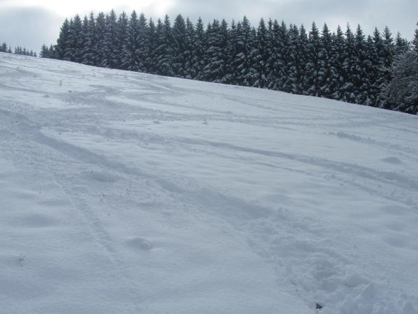 zwischen 20 und 30 cm Neuschnee (oben Pulver)