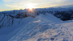 (Tour Mittwoch) Auf der Fahrstrasse bis Chummlihütte und danach auf dem Wanderweg genügend Schnee für Aufstieg nur 20m meter beim übergang Morgetenpass ski getragen.Abfahrt über Nordflanke Normaleinfahrt erstaunlich gut,es gibt schon den einen oder anderen Steinkontakt.Auch hier gilt ein bisschen Augen auf wo es den Schnee hingeweht hat.zum teil Windgepresste unterlage mit Pulver und wieder Knietiefer Pulver ohne Unterlage.Aber gut Fahrbar mit den alten Ski.Der Südhang Bürglen ist selten so Schneebedeckt mit einem harten Deckel.Bin heute vor der Arbeit 06.00 uhr gestartet und habe beim Früstück auf dem Gipfel einen wunderschönen Sonnenaufgang erlebt.Um 9 Uhr war ich dann auch wider an der Arbeit.Im Gantrischgebiet bin ich Donnerstag noch auf dem Schibespitz und Gantrisch gewesen das ist auch alles Fahrbar gewesen.Heute ging ich nochmals auf die Bürglen und es hat heftigen Südwestwind gehabt.Nord Abfahrt oberhalb 1700m immer noch Pulver darunter hat es einen harschdeckel gegeben.