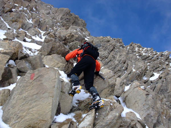 IIer Schlüsselstelle etwas heikel, weil gute Griffe alle vom Schnee verdeckt waren.