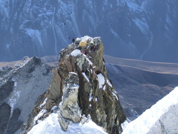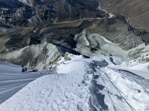 diesen Herbst perfekte Verhältnisse an der Ama Dablam! Kein Blankeis sondern durchwegs guter Trittfirn! Bis zum Camp 2 beste Felsqualität, danach auch im Eis perfekt; Fixseile alle in durchschnittl. gutem Zustand;